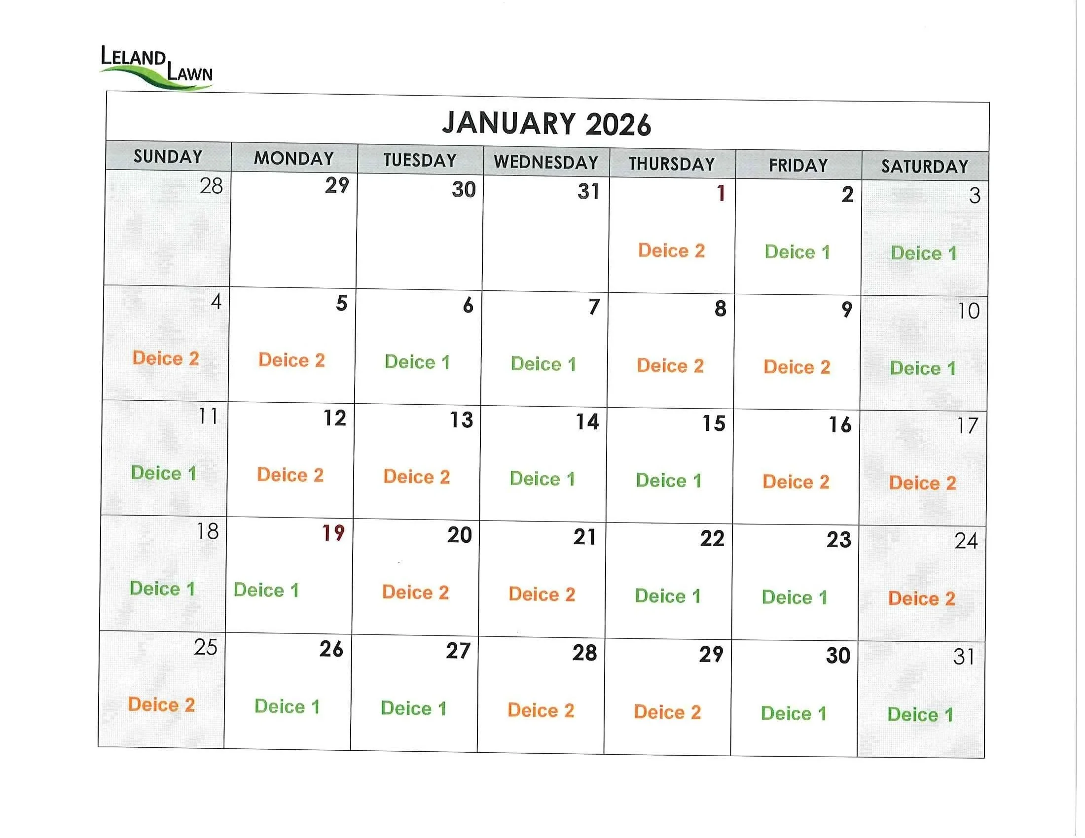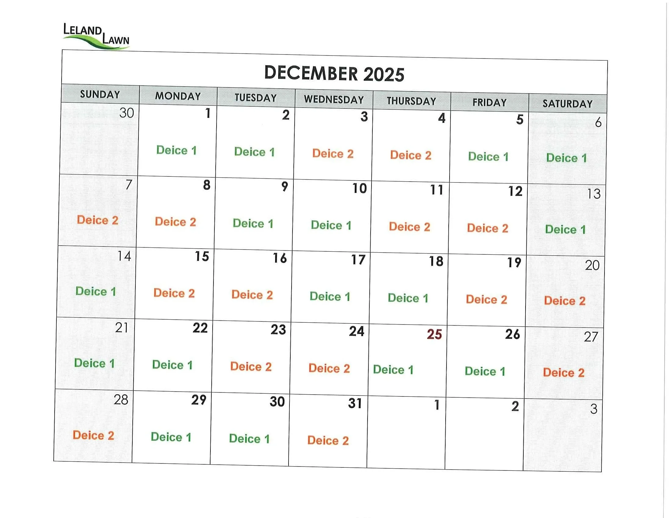 This page outlines winter scheduling for Leland Lawn employees.