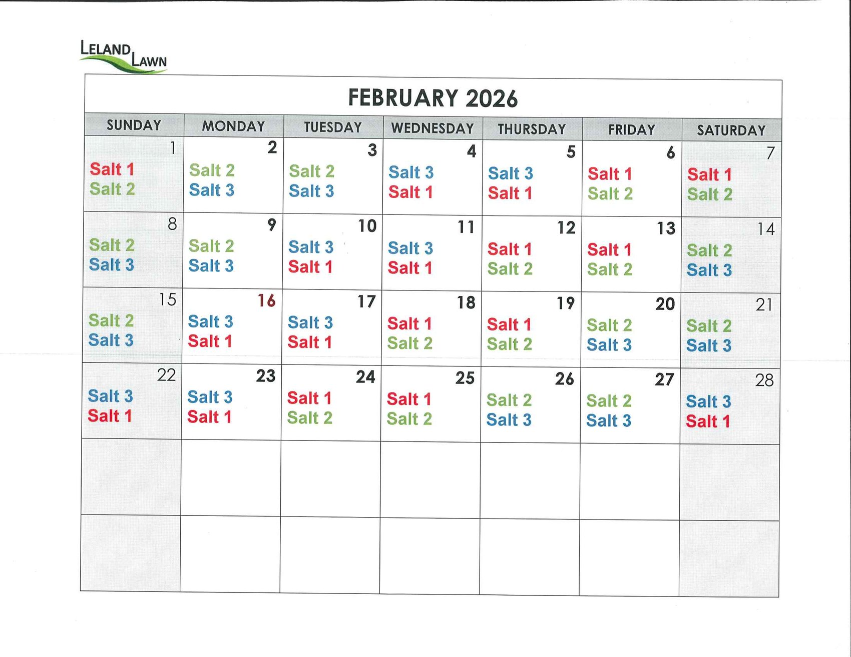 This page outlines winter scheduling for Leland Lawn employees.